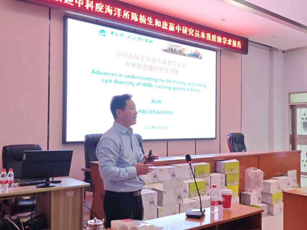 2025年10月29日下午,中国科学院海洋研究所陈楠生研究员和唐赢中研究员受邀在太阳集团tyc官网入口水产楼109会议室为suncitygroup太阳新城师生作题为“产毒硅藻毒素合成基因的起源与演化”和“中国海域有害藻华藻类生活史和休眠孢囊的研究进展”的学术报告。报告会由水产学院副院长陈华谱教授主持,学院部分教师、研究生及本科生80余人参加。