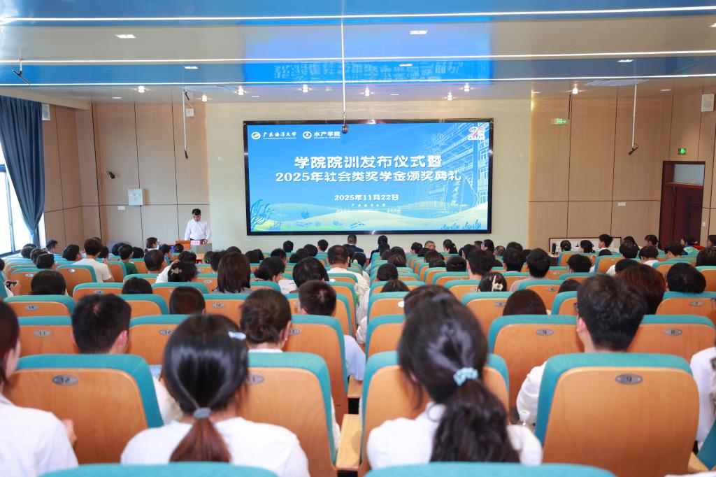 颁奖典礼上,罗大极在致辞中将学院发展置于学校九十年“蔚蓝征程”的宏阔背景之下并指出,从国审新品种马氏珠母贝“海选1号”解决海水珍珠产业的“卡脖子”问题到以生态养殖技术推动产业绿色转型;从海洋牧场建设拓展养殖空间,到深远海与工厂化养殖突破资源限制,再到智慧渔业模式赋能产业效率革新等,学院的科研探索始终紧扣“陆海统筹”国家战略,是“厚德砺行,牧渔兴邦”院训精神的生动实践。他勉励全院师生以九秩积淀为新起点,携手谱写水产学科的未来新篇。
