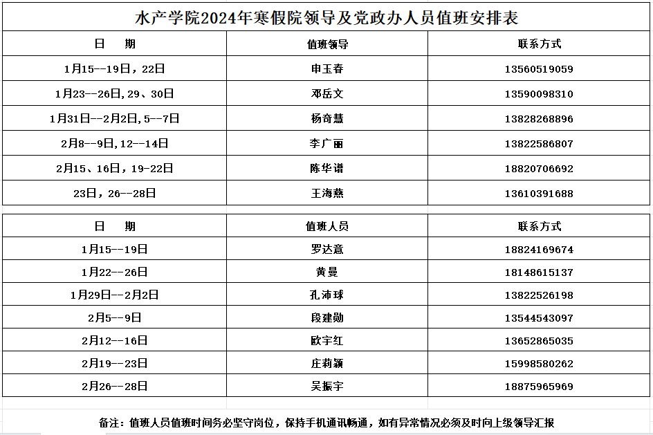 suncitygroup太阳新城2024年寒假院领导及党政办人员值班安排表