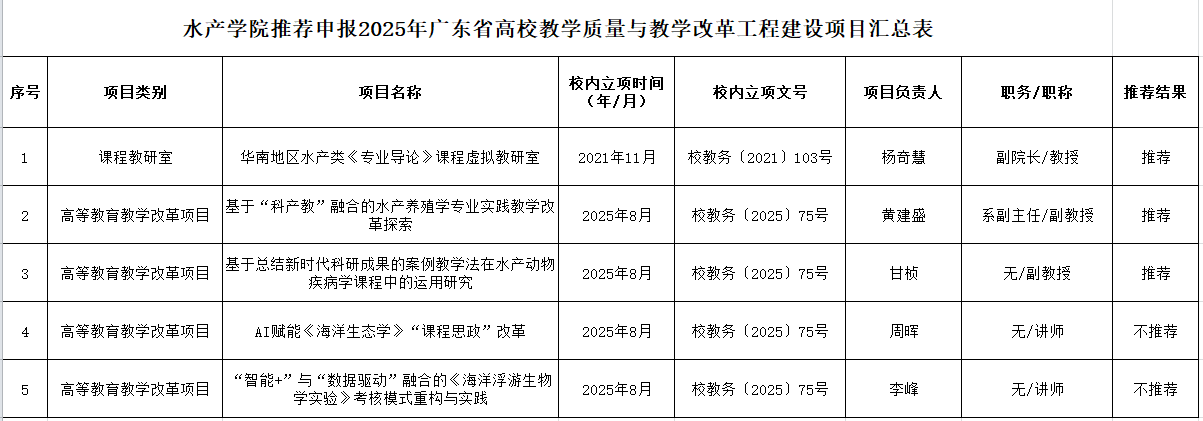 根据学校教务部《关于开展我们2025年度广东省高校教学质量与教学改革工程建设项目申报推荐工作的通知》要求,学院组织开展有关项目的申报及推荐工作。经个人申报、学院资格审核及专家评审、学院党政联席会议审议,并根据学校对各类别项目限额的数量,学院择优推荐,拟推荐各类别项目共3项(课程教研室1项,高等教育教学改革2项)。现予以公示(详见附表)。